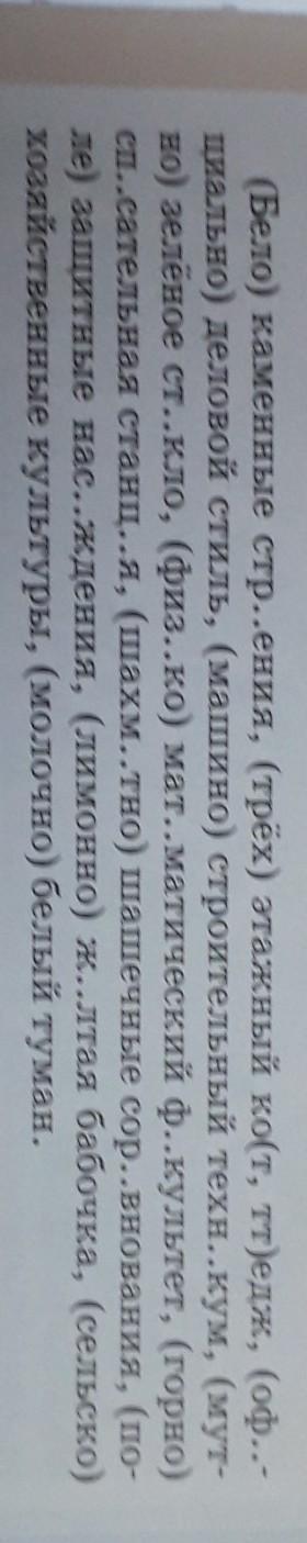 белокаменные строения,трехэтажный коттедж,официально-деловой стиль,машиностроительный техникум,мутно зеленое стекло,физико-математический факультет,горно-спасательная станция,шахматно -шашечные соревнования,полезащитные насаждения,лимонно-желтая бабочка,сельскохозяйственные культуры,молочно-белый туман.
