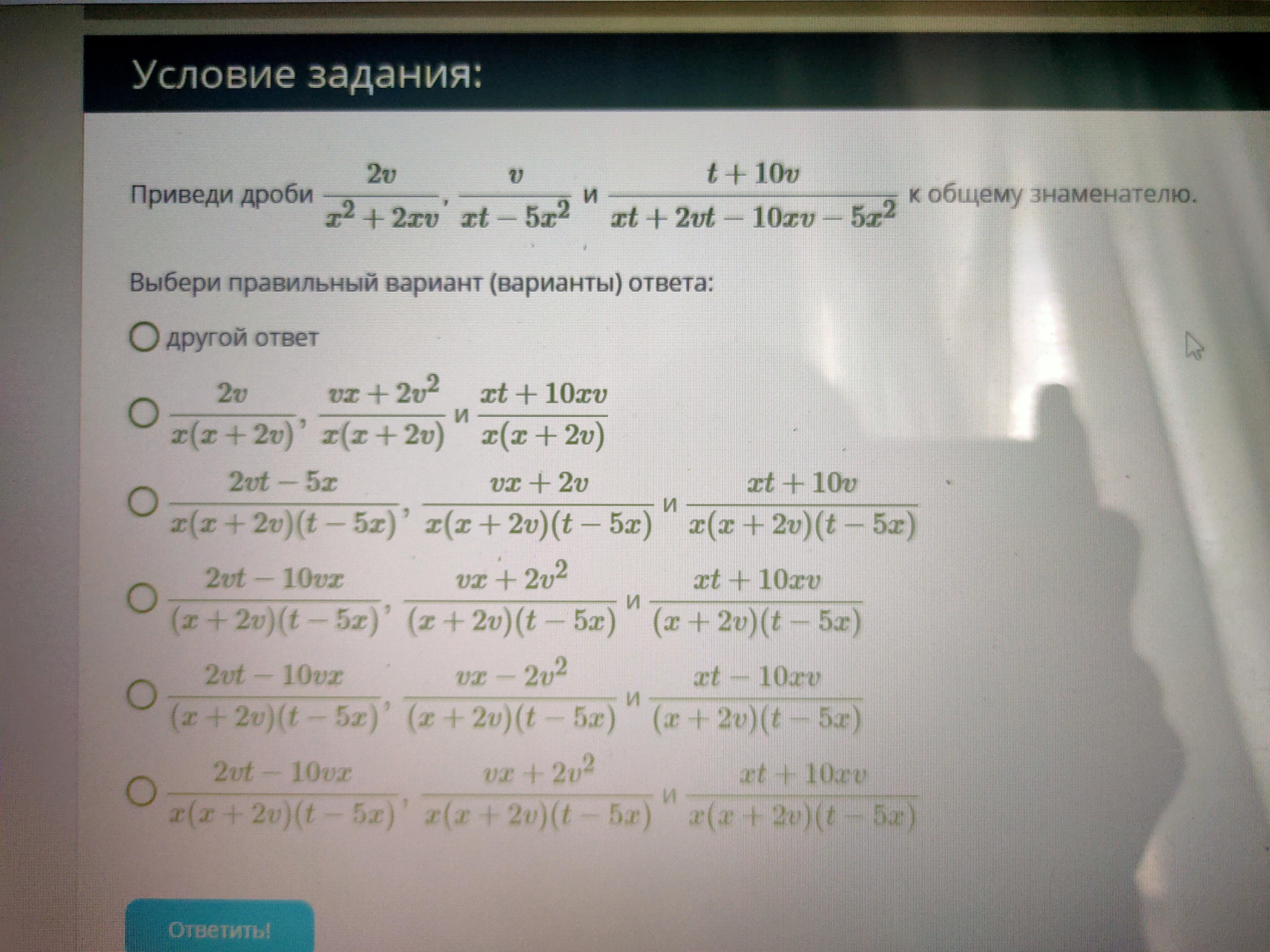 (t + 10v)/(x + 2v)(t - 5x) = x(t + 10v)/(x + 2v)(t - 5x)x = (xt + 10xv)/(x + 2v)(t - 5x)x