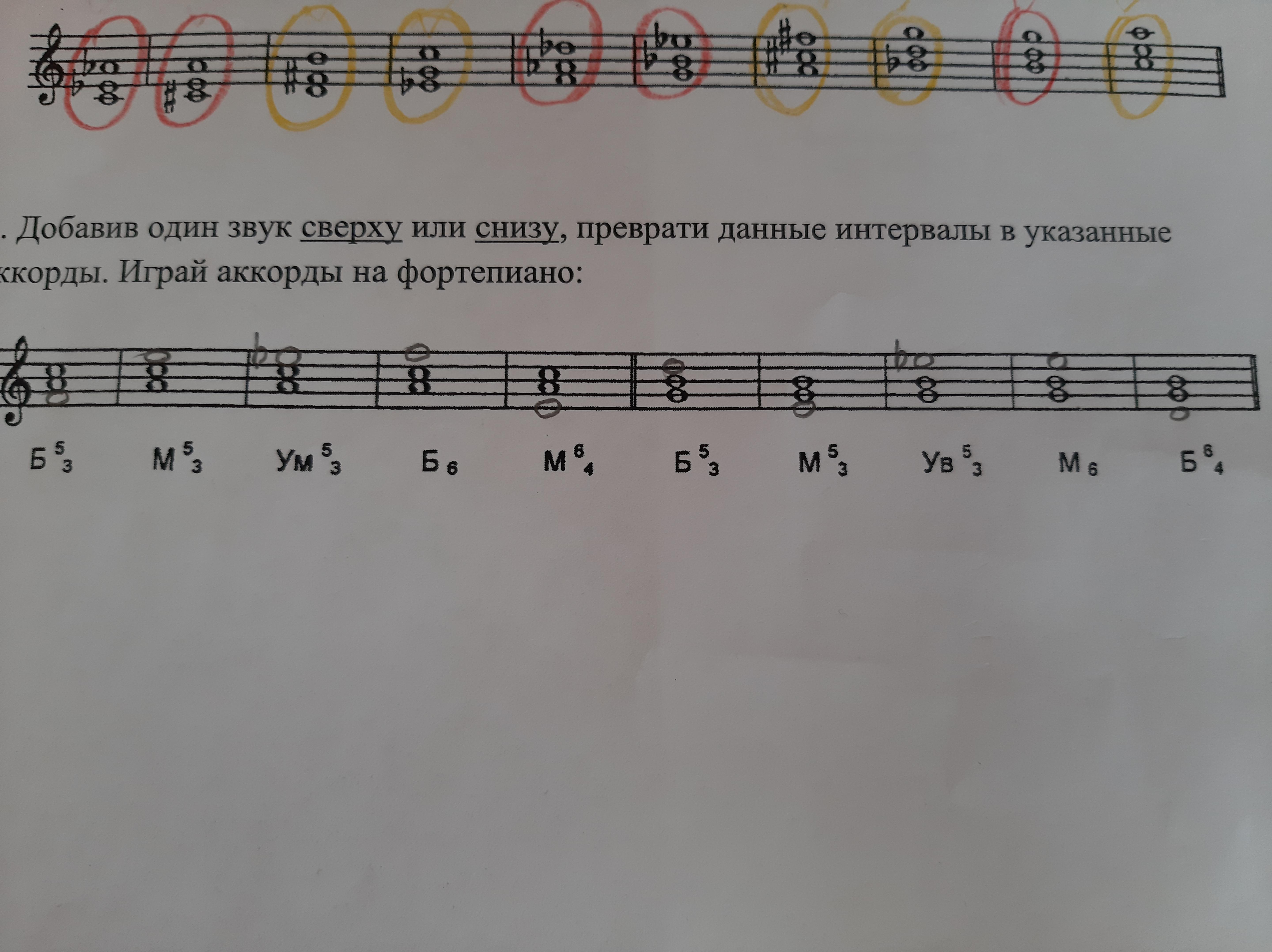 Добавив один звук сверху или снизу, преврати данные интервалы в указанные аккорды. ПОМОГИТЕ ПОЖАЛУЙСТА!