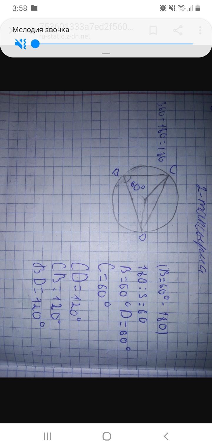 Шеңберге іштей CBD тенбуйрли үшбұрышты сызылган. Үшбұрыштың CD табанының ұзындыгын шеңбердің радиуысына тең. CB BD және CD догалардын олшемин аныктаныз.