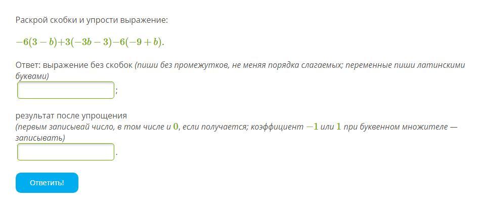 -6(3-b)+3(-3b-3)-6(-9+b)