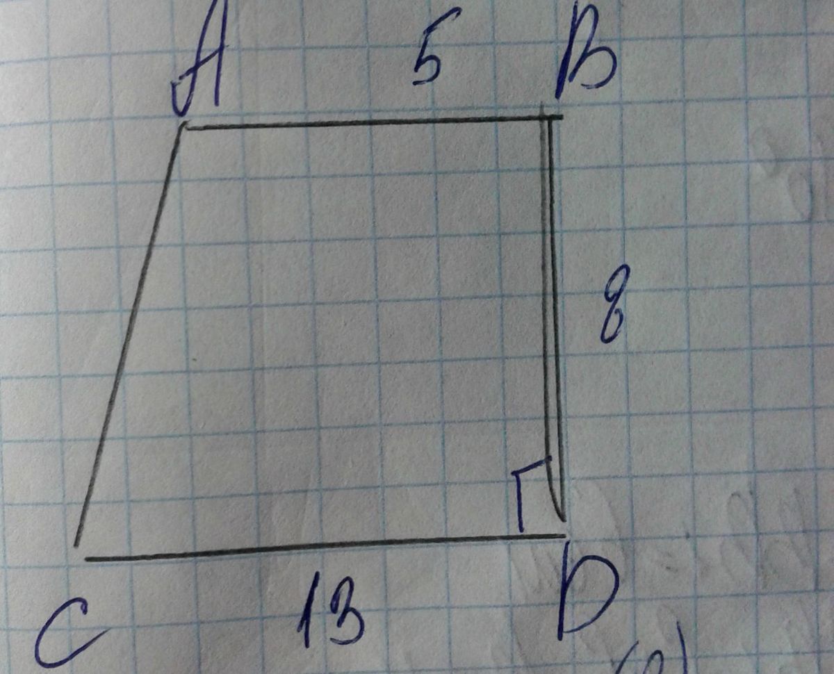 Дано : ABCD трапеция.AB || СDAB=5 ; СD=13 ; BD=8