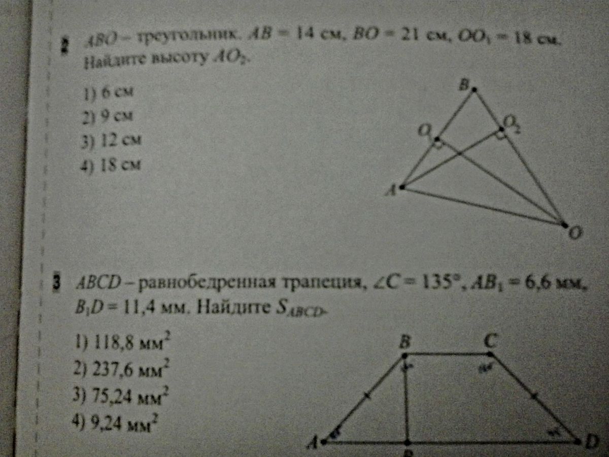 номер 2. рассмотрим треугольник ABO. найдем площадь треугольника