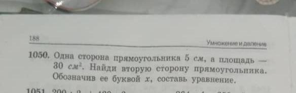 Одна сторона прямоугольника 5см,а площадь- 30см.кв. Найдите вторую