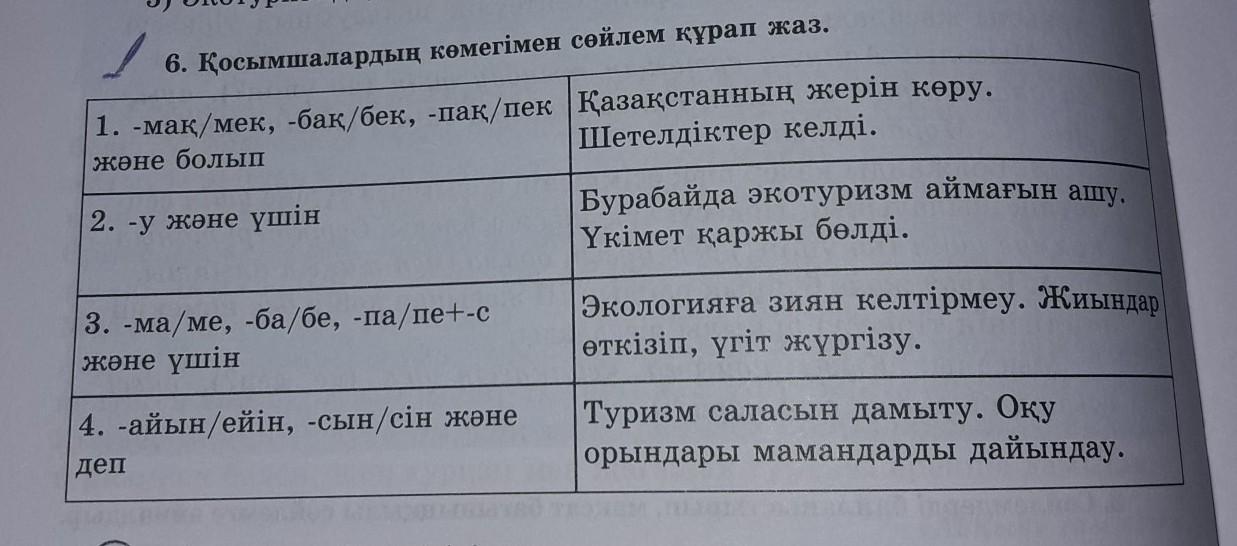 6. Қосымшалардың көмегімен сөйлем құрап жаз.