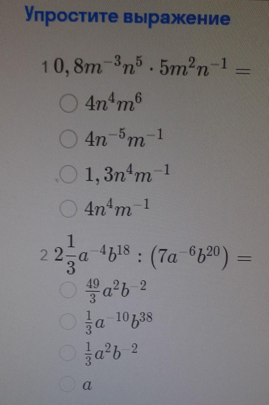 0,8m⁻³n⁵ * 5m²n⁻¹=4n⁴m⁻¹