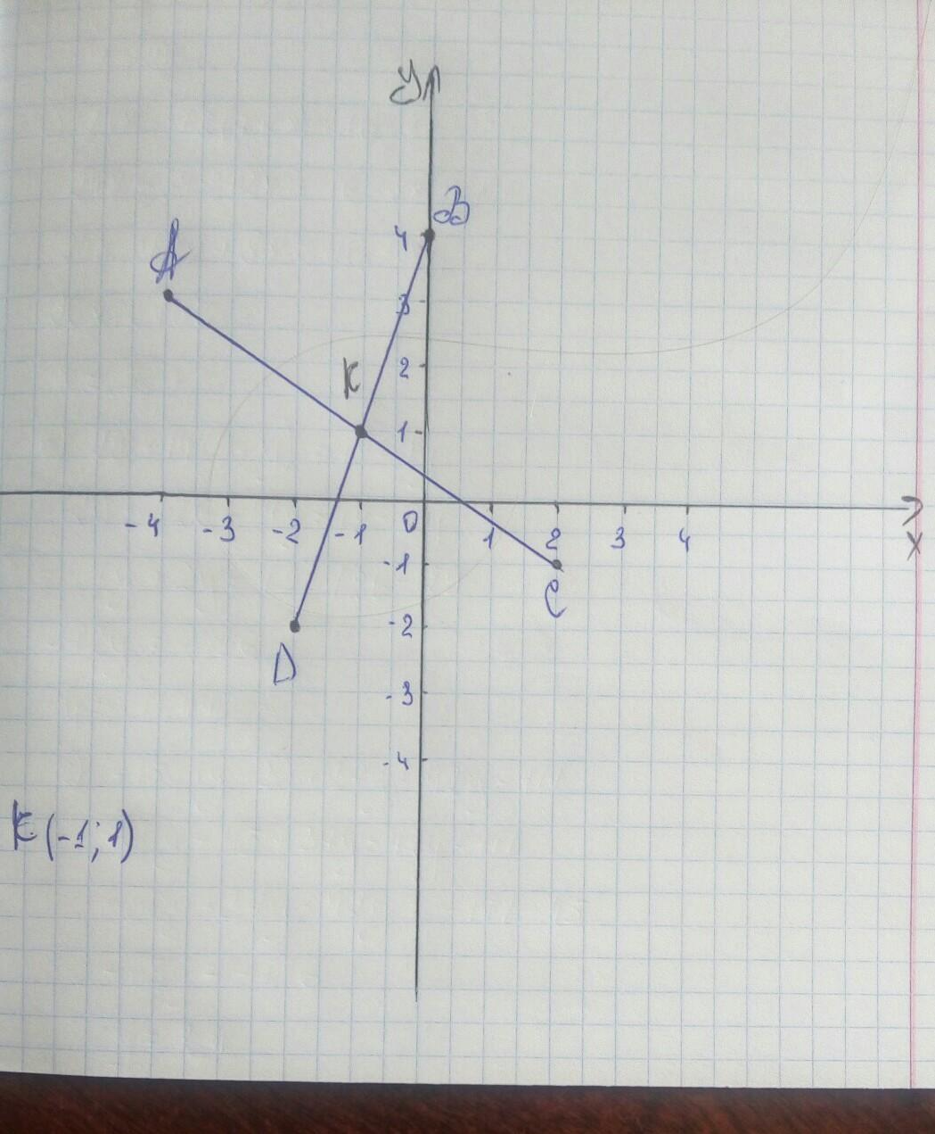 Координаты точки пересечения отрезков: К(-1;1)