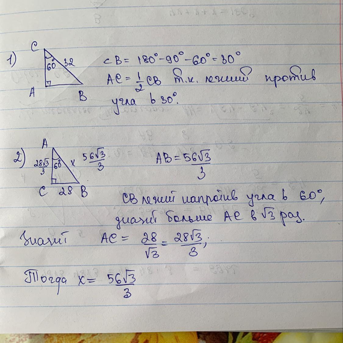 гипотенуза 32 см. Найдите катет, прилежащий к данному