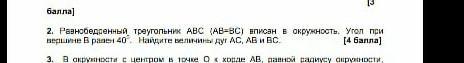 Равнобедренный треугольник АВС(АВ=ВС) вписан в окружность.