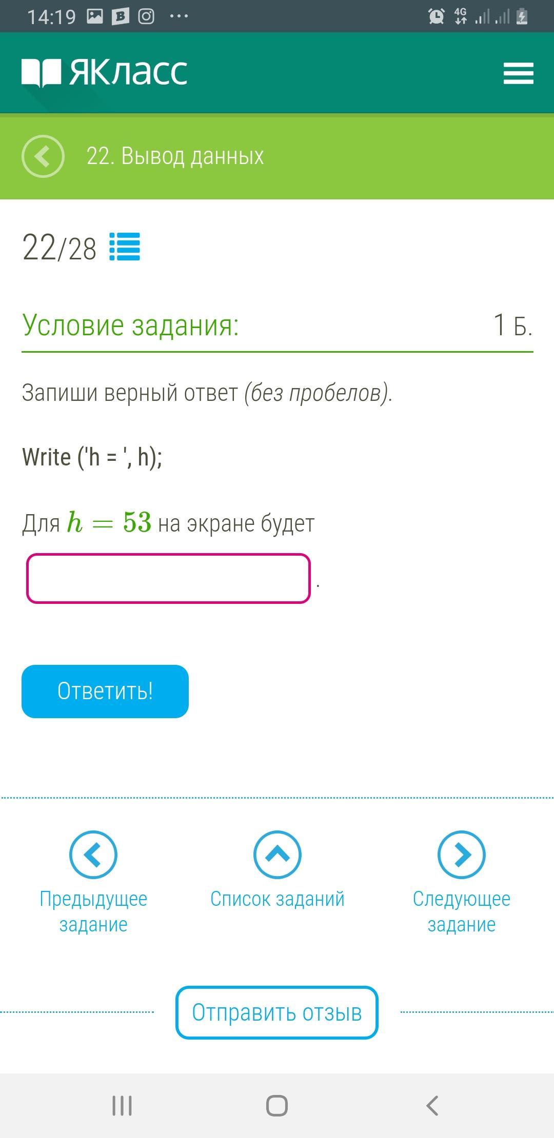 На экране будет 'h = 62'