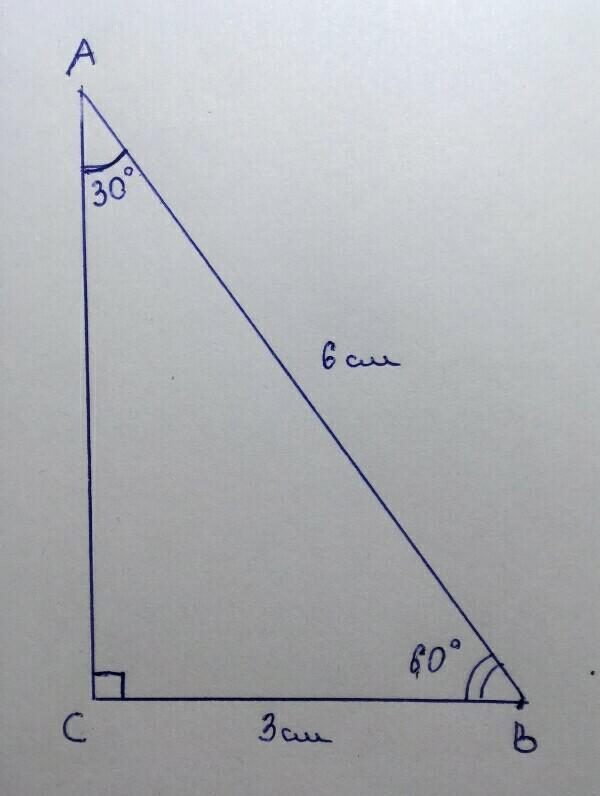 Если угол прямоугольного треугольника равен 30°, то напротив лежащий катет равен половине гипотенузы.