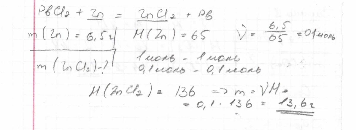m(ZnCl2)=n*M=135*0.1=13.5г