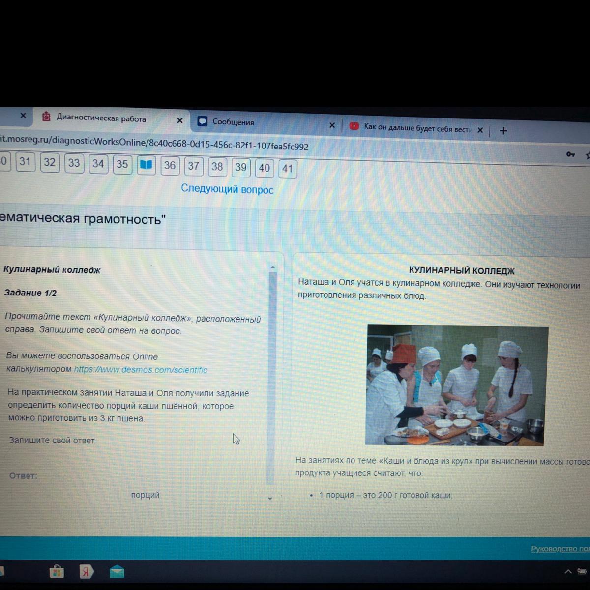 на практическом занятии Наташа и Оля получили задание определить количество порций каши пшенной, которое можно приготовить из 3кг пшена.