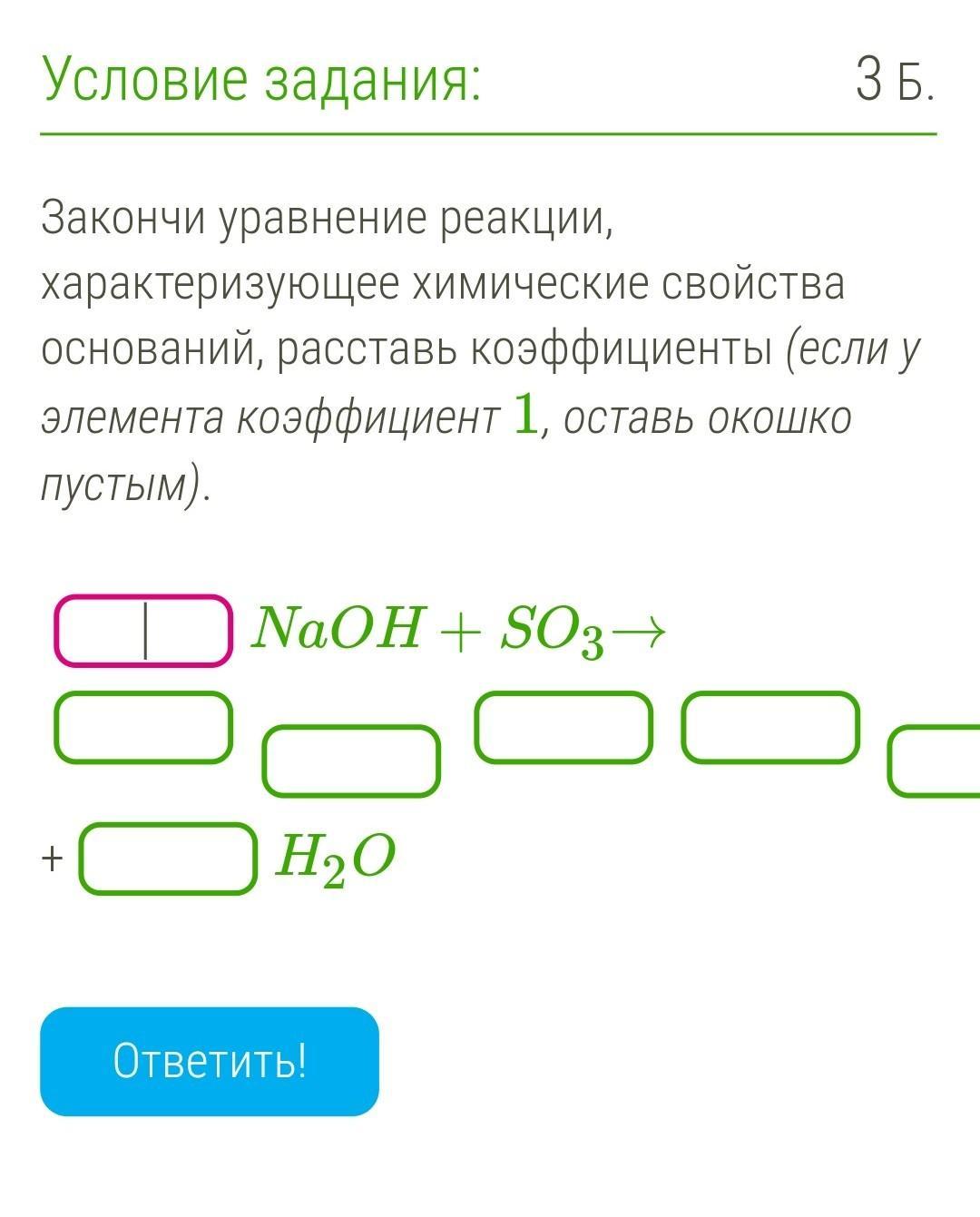 Закончи уравнение реакции, расставь коэффициенты (если у элемента коэффициент 1, то оставь окошко пустым)