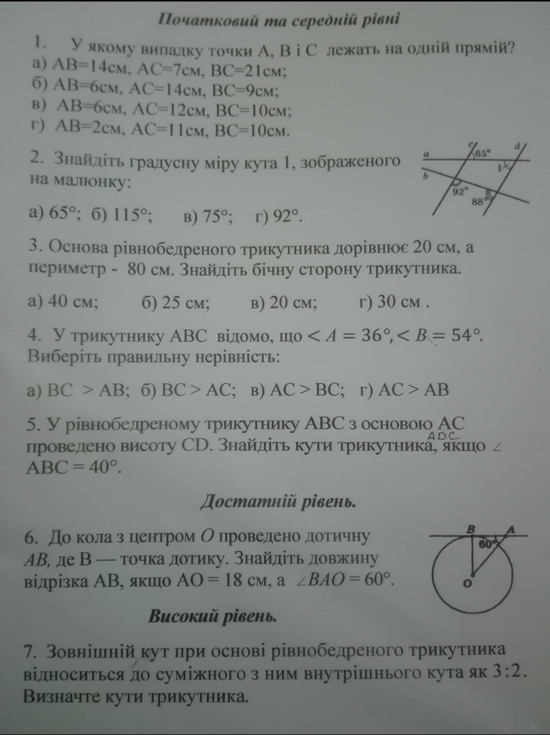 1. Якщо а+b=c, то точки лежать на одній прямій, тобто сума двух менших сторін має дорівнювати третій. Підходить лише варіант А 14+7=21