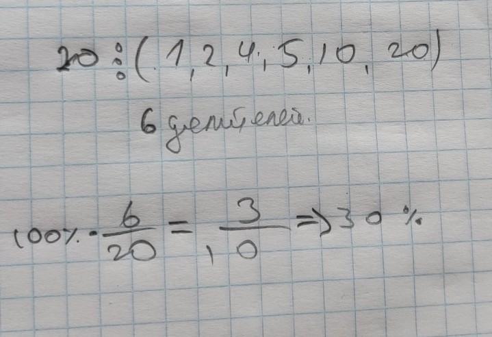 По-скольку делителей 6, то 6/20*100%=3/10*100%=30%