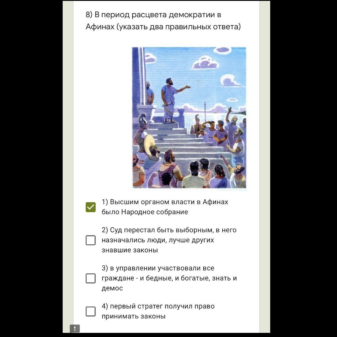 - 1)Высшим органом в власти в Афинах было народное собрание
