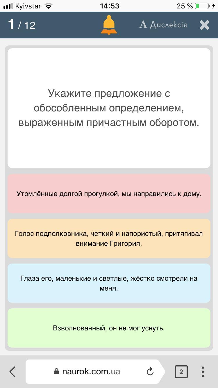 1. Утомлённые долгой прогулкой, мы направились к дому.