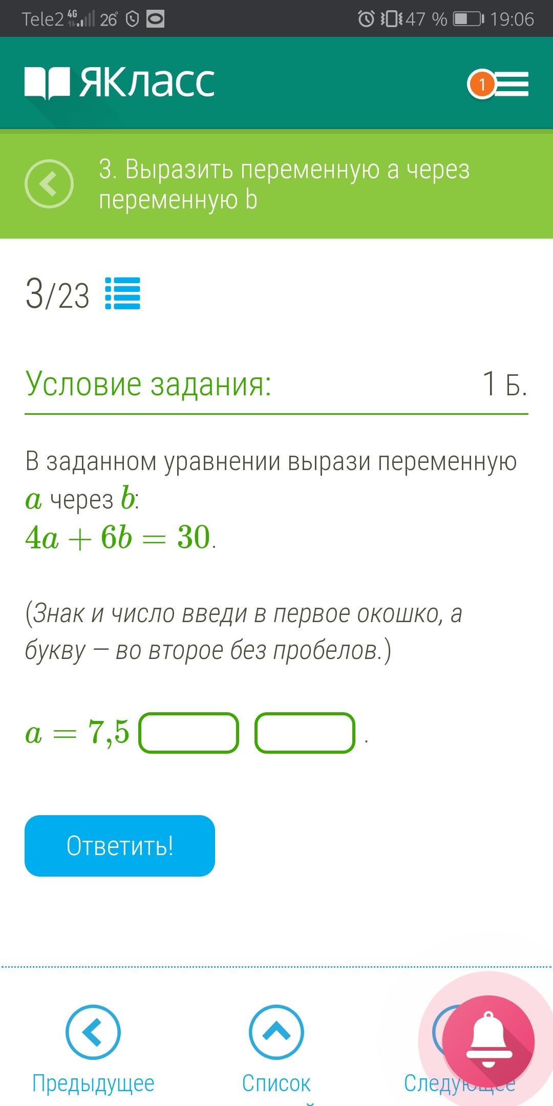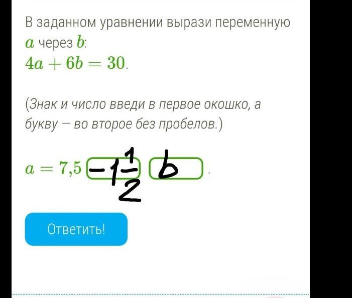 (Знак и число введи в первое окошко, а букву — во второе без пробелов.)