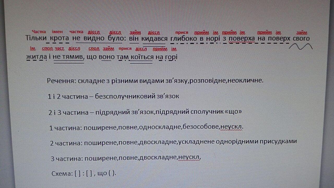 ДОПОМОЖІТЬ БУДЬ-ЛАСКА УКР МОВА РОЗБІР РЕЧЕННЯ: Тільки крота не видно було: він кидався глибоко в норі з поверха на поверх свого житла і не тямив, що воно там коїться на горі