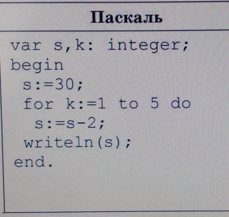 Выше приведена программа,записанная на языке программирования Паскаль. определите,что будет напечатано в результате работы этой программы.