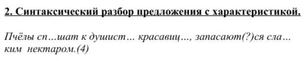Ответ: Пчёлы (сущ, подлежащее) спешат (гл, сказуемое) к (предлог) душистой (прил, определение) красавице (сущ, дополнение), запасаться (гл, сказуемое) сладким (прил, определение) нектаром (сущ, дополнение). (Повест, невоскл, простое, распростр)