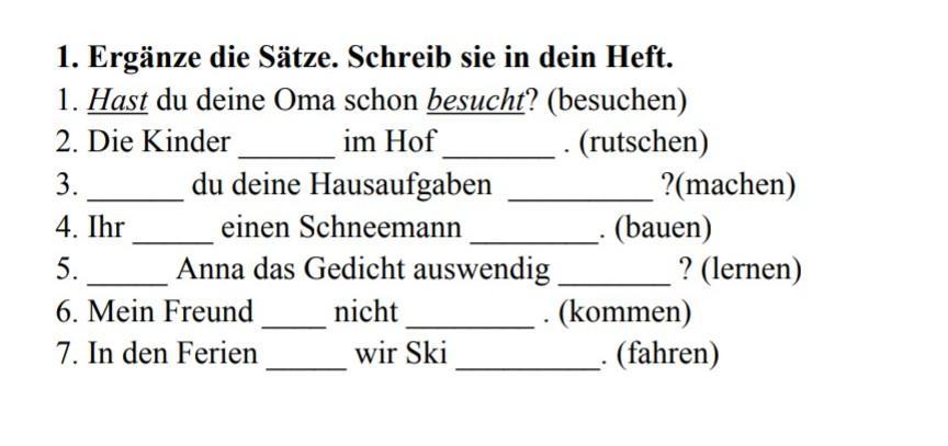 Ergänze die Sätze. Schreib sie in dein Heft.