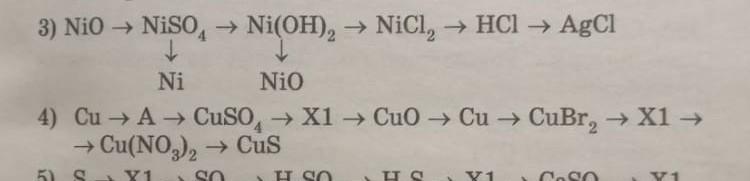 4)Cu --> A ---> CuSO4 --> X1 ----> CuO --> CuBr2 ---> X1 ---> Cu(NO3)2 --> CuS