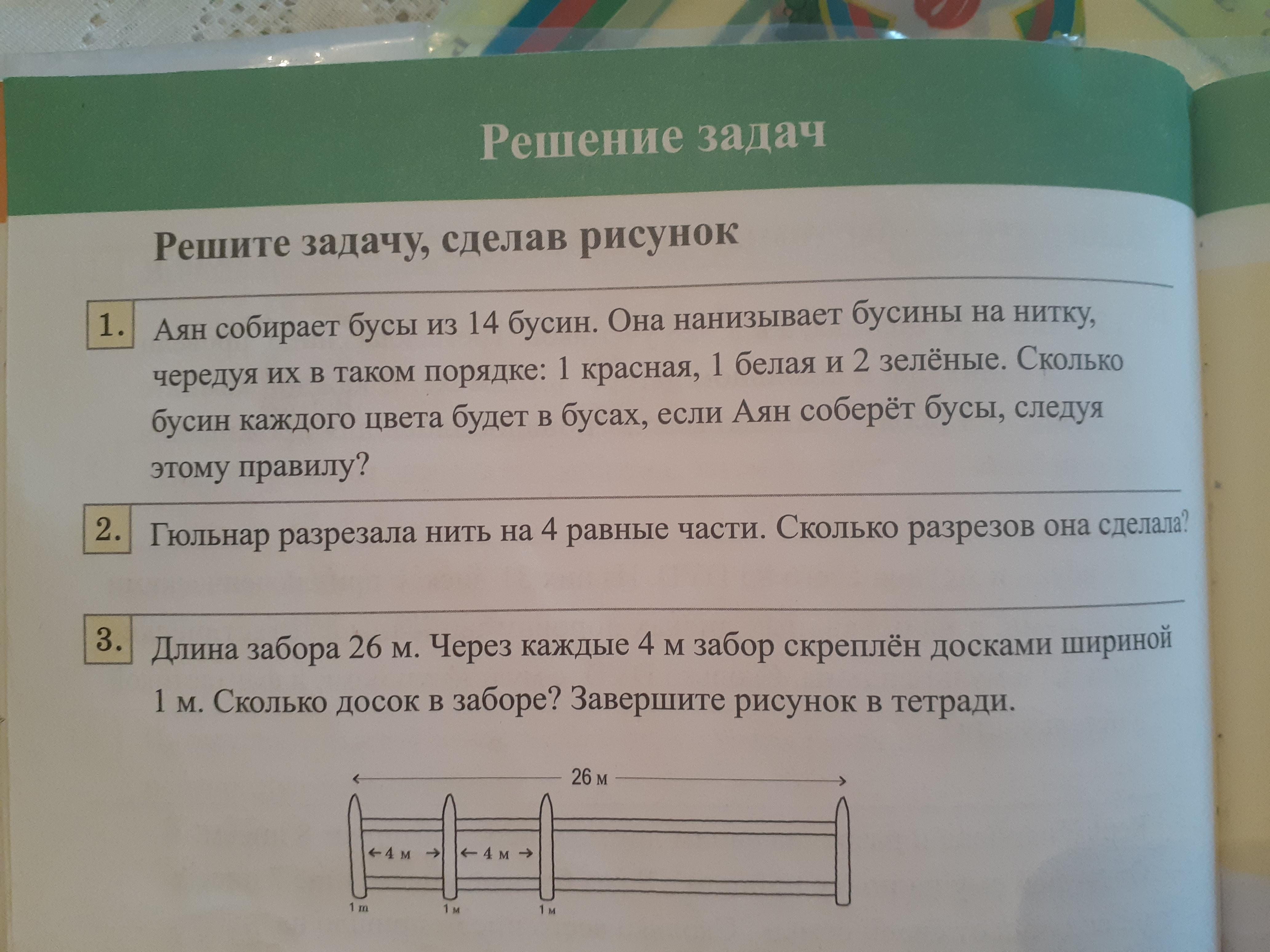 Ответ:задача вторая: 3 разреза. Задача 3: 26:4=5промижутков остаток 6 досок. Ответ 6 досок