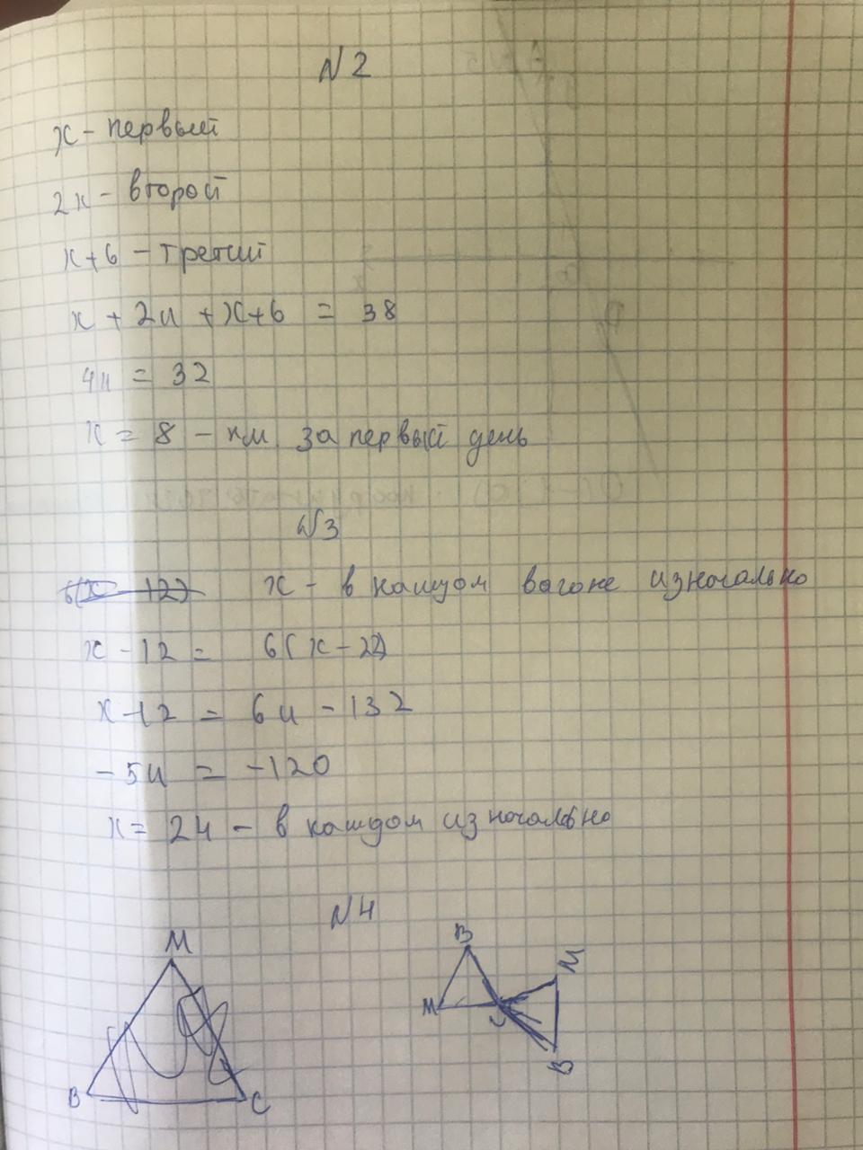 2. За три дня туристы прошли 38 км. За второй день они прошли в 2 раза больше, чем за первый, а за третий – на 6 км больше, чем за первый. Сколько километров прошли туристы за первый день?