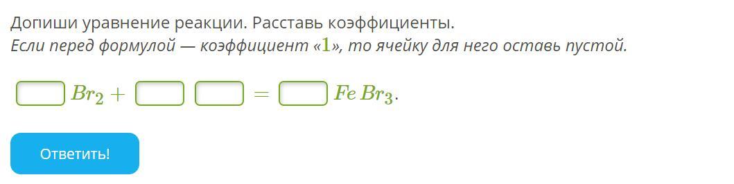 Допиши уравнение реакции. Расставь коэффициенты.