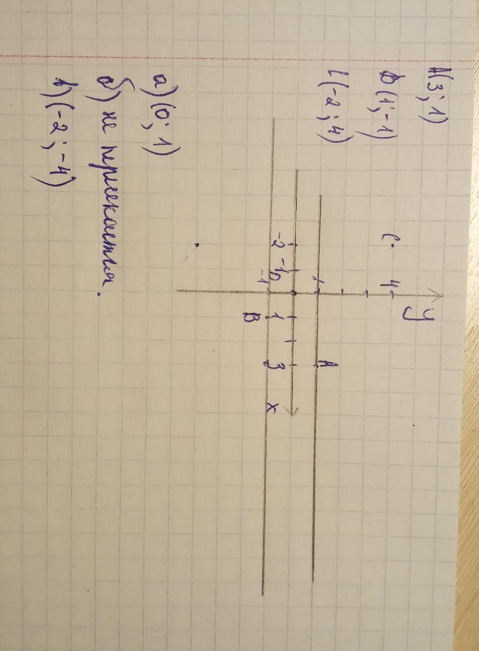 а) Проведите через точку А прямую, параллельную оси абсцисс. Найдите координаты точки пересечения этой прямой с осью ординат.