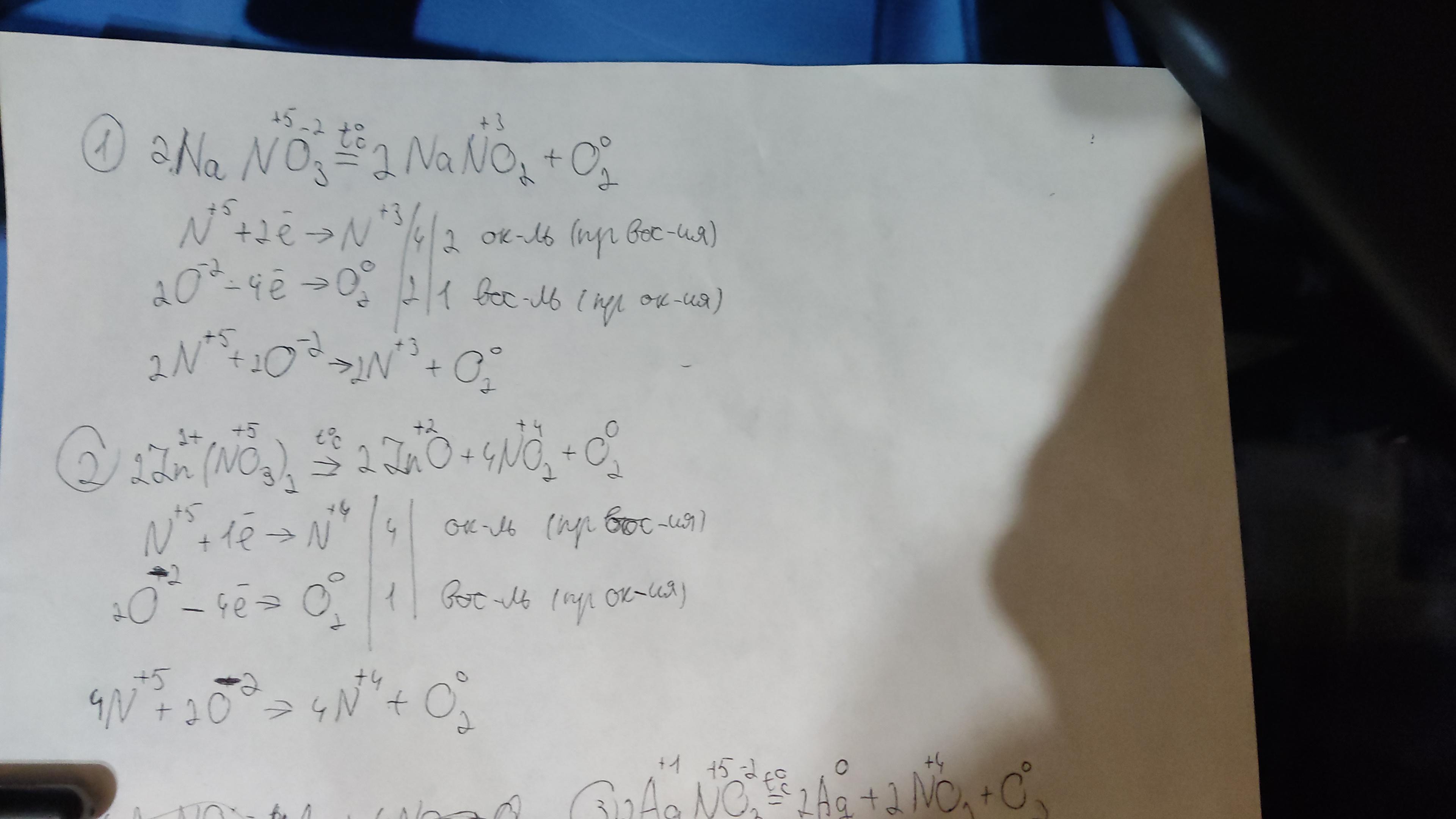 5.Составить уравнения разложения нитратов натрия , цинка и серебра . Составить