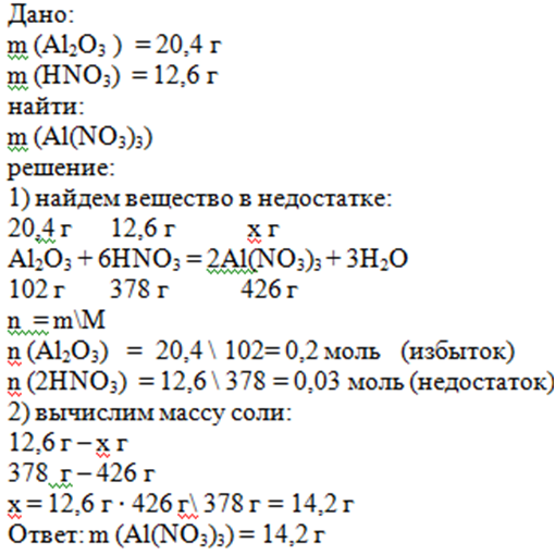20,4 оксида алюминия реагируют с 12,6 г. азотной кислоты найти массу получившегося нитрата алюминия