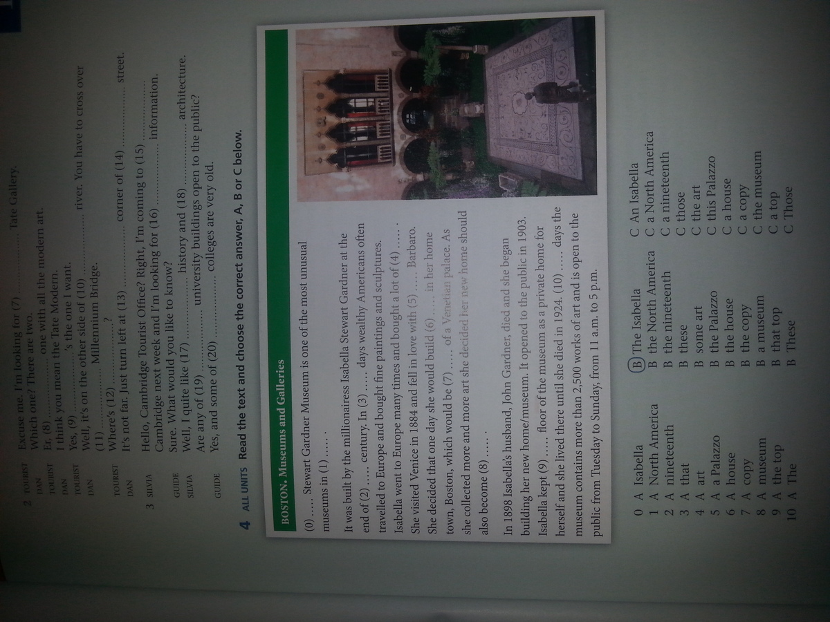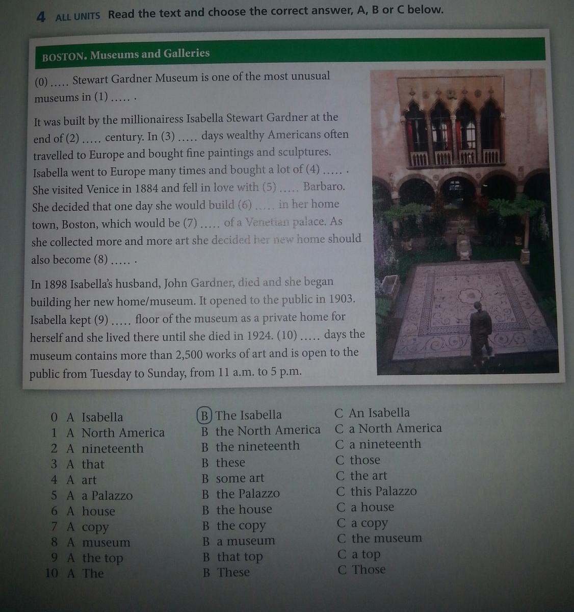 1A North America 2B the ninteenth 3C those 4A art 5B the Palazzo 6C a house 7C a copy