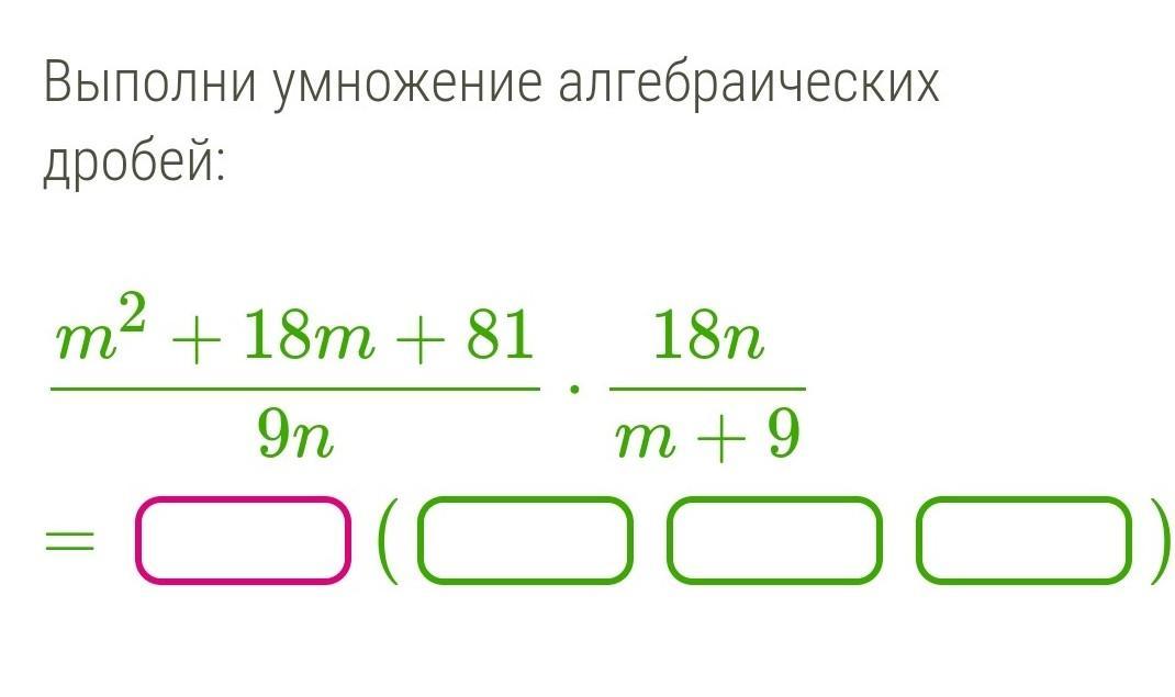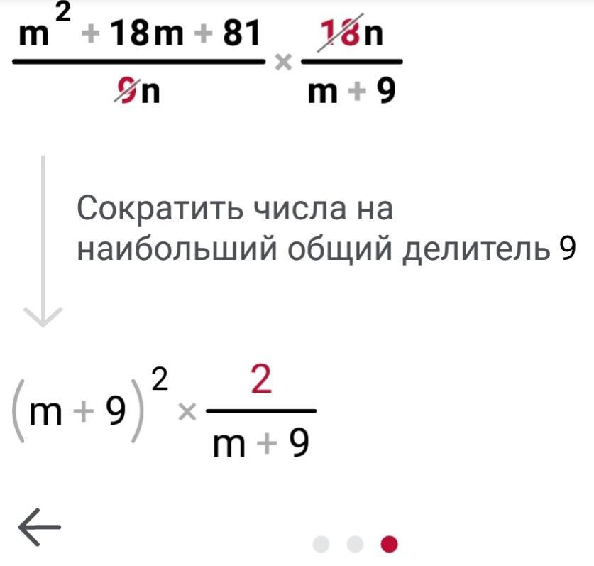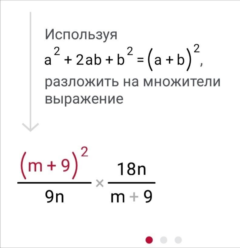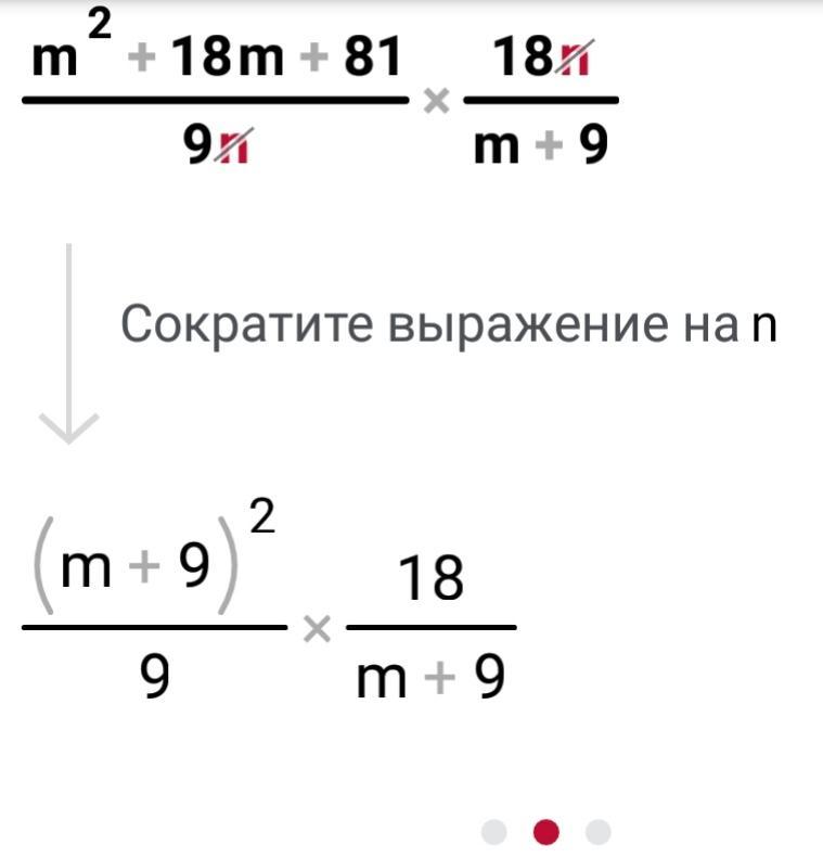9n сокращается с 18n, а m+9 сокращается с m^2+18m+81 , в результате получается m+9*8=72+m