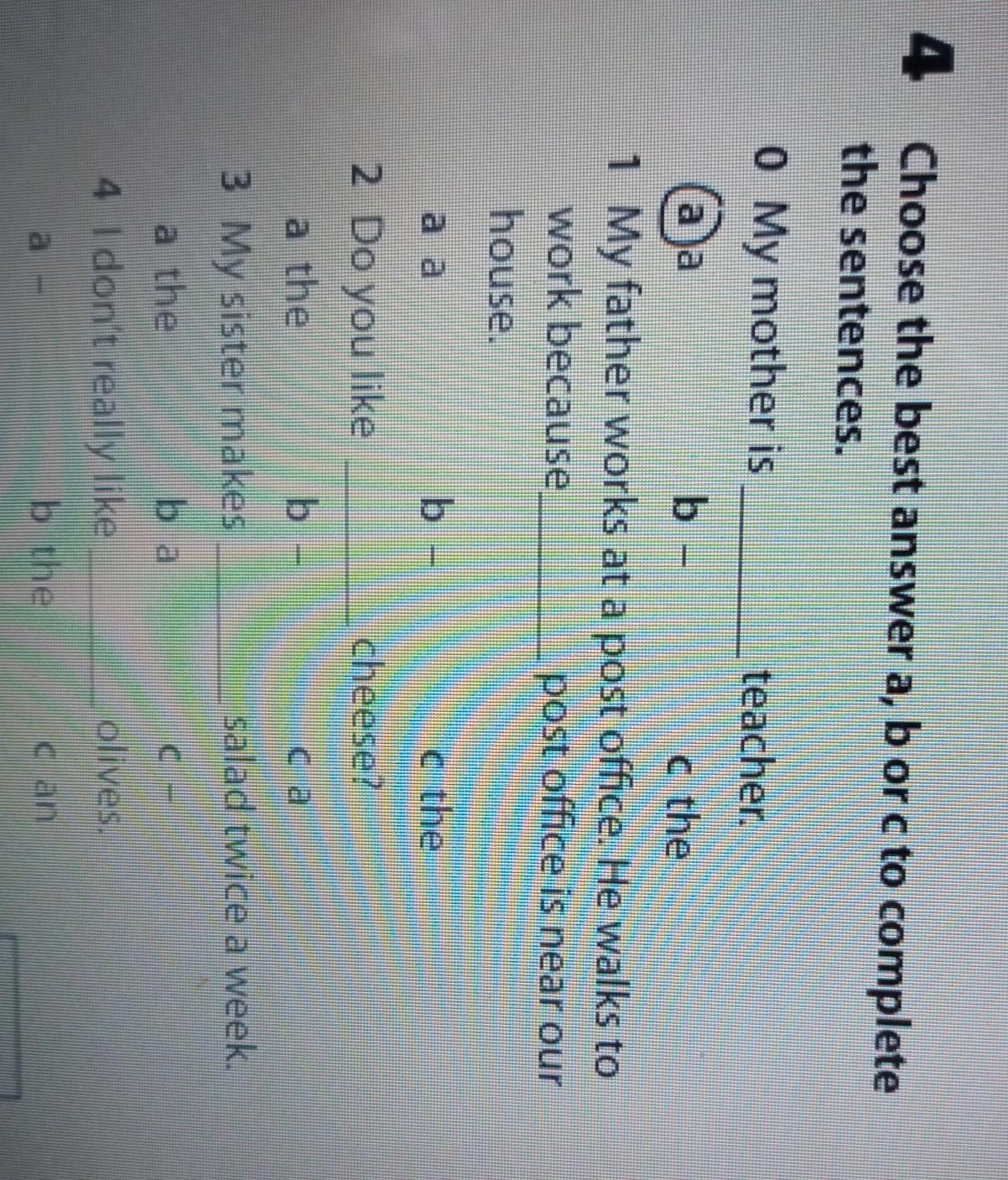 1.) My father works at a post office. He walks to work because the post office is near our house.
