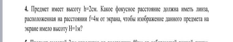 d=H*f/h= 1cм * 400 см/ 200 см= 2 см