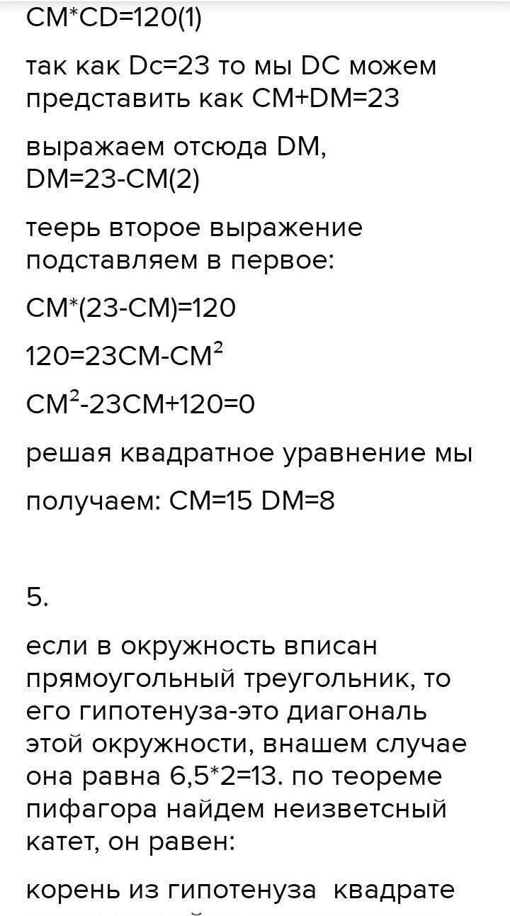 4. В окружности проведены две хорды АВ и CD, пересекающиеся в точке М, МВ = 10 см, AM = 12 см, DC = 23 см. Найдите длины СМ и DM.