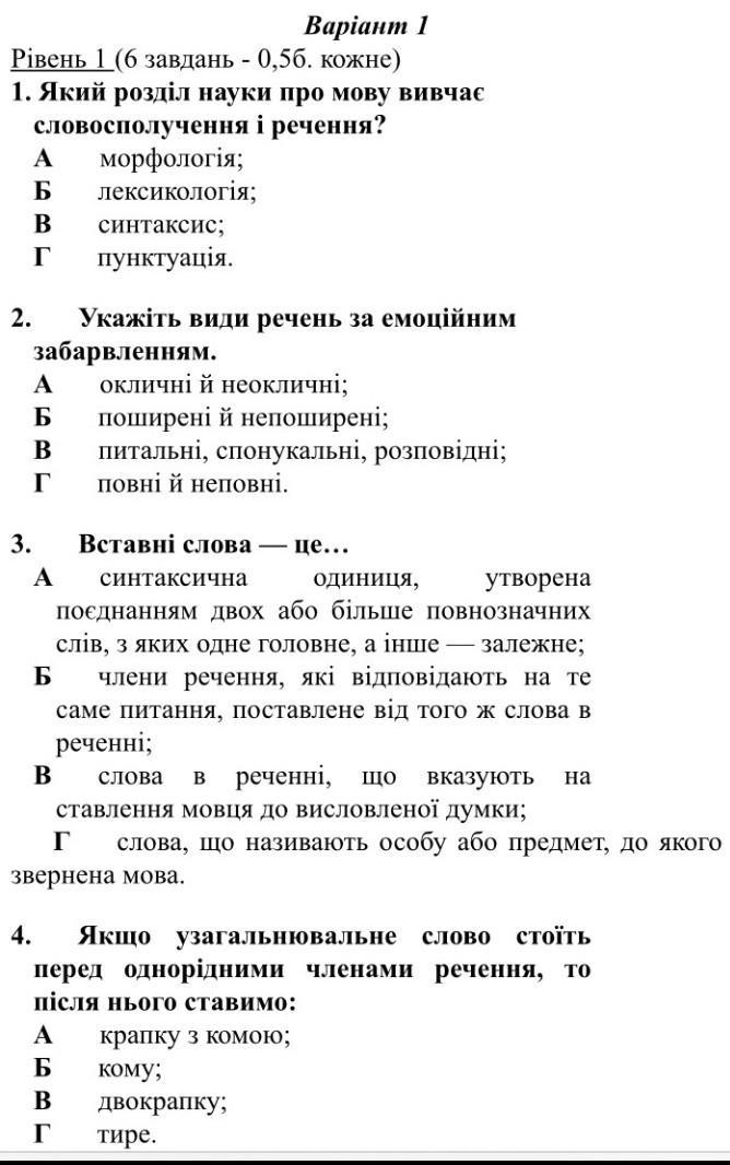 1. Розділ мовознавства, що вивчає словосполучення та речення - синтаксис - В