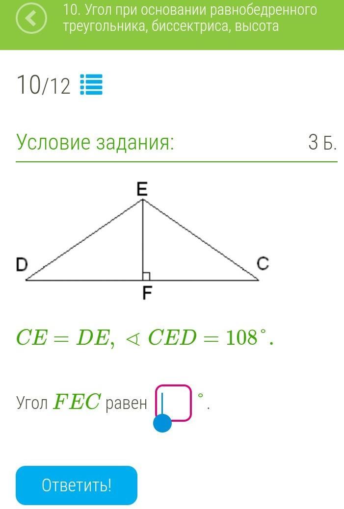 Объяснение: треугольник равнобедренный, т.к CE=DE, у него углы при основании равны