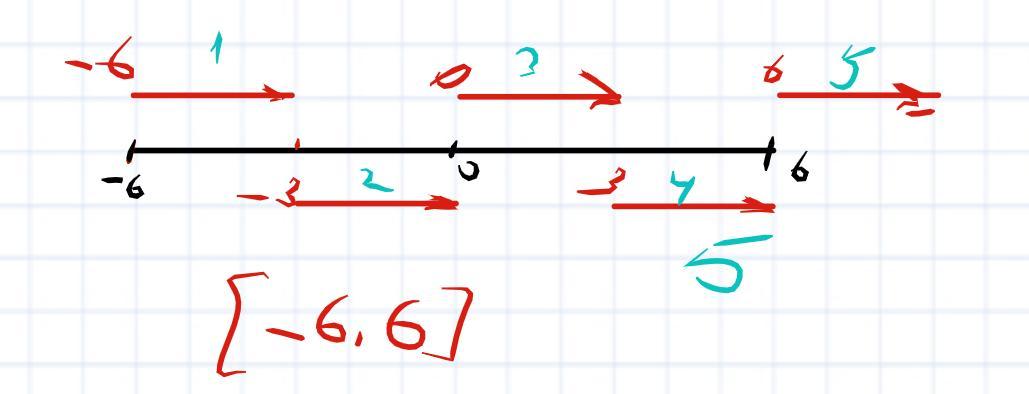 Подозреваю, если первым значением была -6, то последнее выполнение с 6, т.к. края включены. На фото подробнее