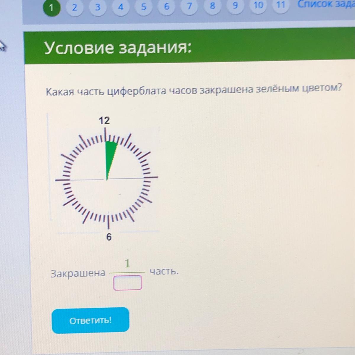 Закрашено 3 из 60, т.е. 3/60, сокращаем на 3 и получаем 1/20