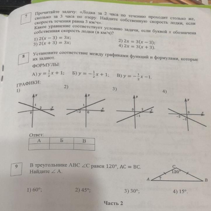 А) Коэффициент k Положительный 1/2, значит наклон направо, коэффициент b равен 1, значит точка пересечения с осью Оу находится над осью Ох. Это номер 2)