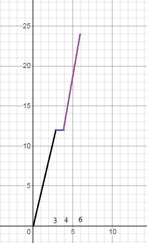 Турист вышел из пункта А в пункт В. Сначала шёл 3 ч со скоростью 4 км/ч, потом 1 ч отдыхал, после чего шёл ещё 2 ч со скоростью 6 км/ч и прибыл в пункт В. По Постройте график движения туриста.