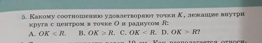 Какому соотношению удовлетворяют точки К ,лежащие внутри круга с центром в точке О и радиуса R: