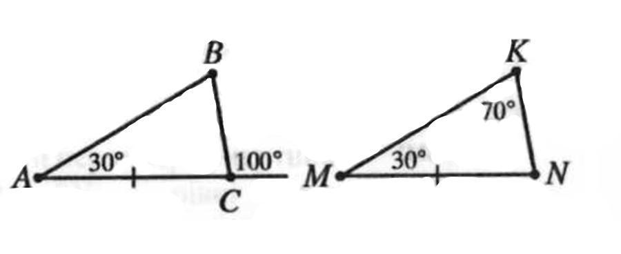 Кут А и кут М ровные между собой потому что имеют 30°, отрезок АС и МN ровные между собой и дальше сложно объяснить