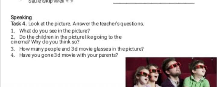 1)In this photo I see a family that came to the 3D movie.