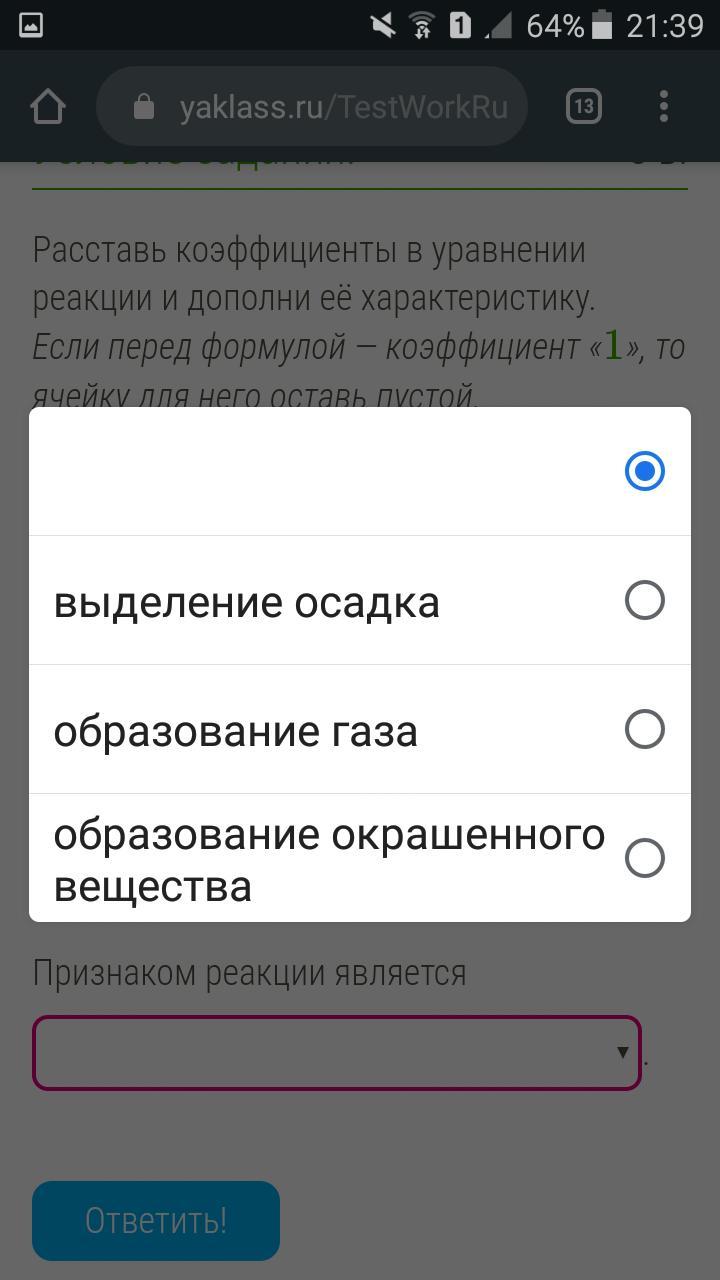 Признаком реакции является-выделение осадка,образование газа или образование окрашенного вещества