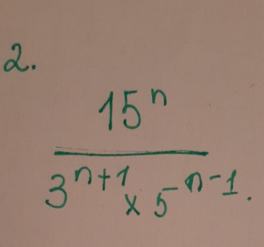 2. Сократить дробь (15ⁿ)/(3ⁿ∙3∙5ⁿ:5)